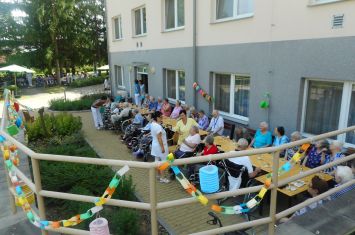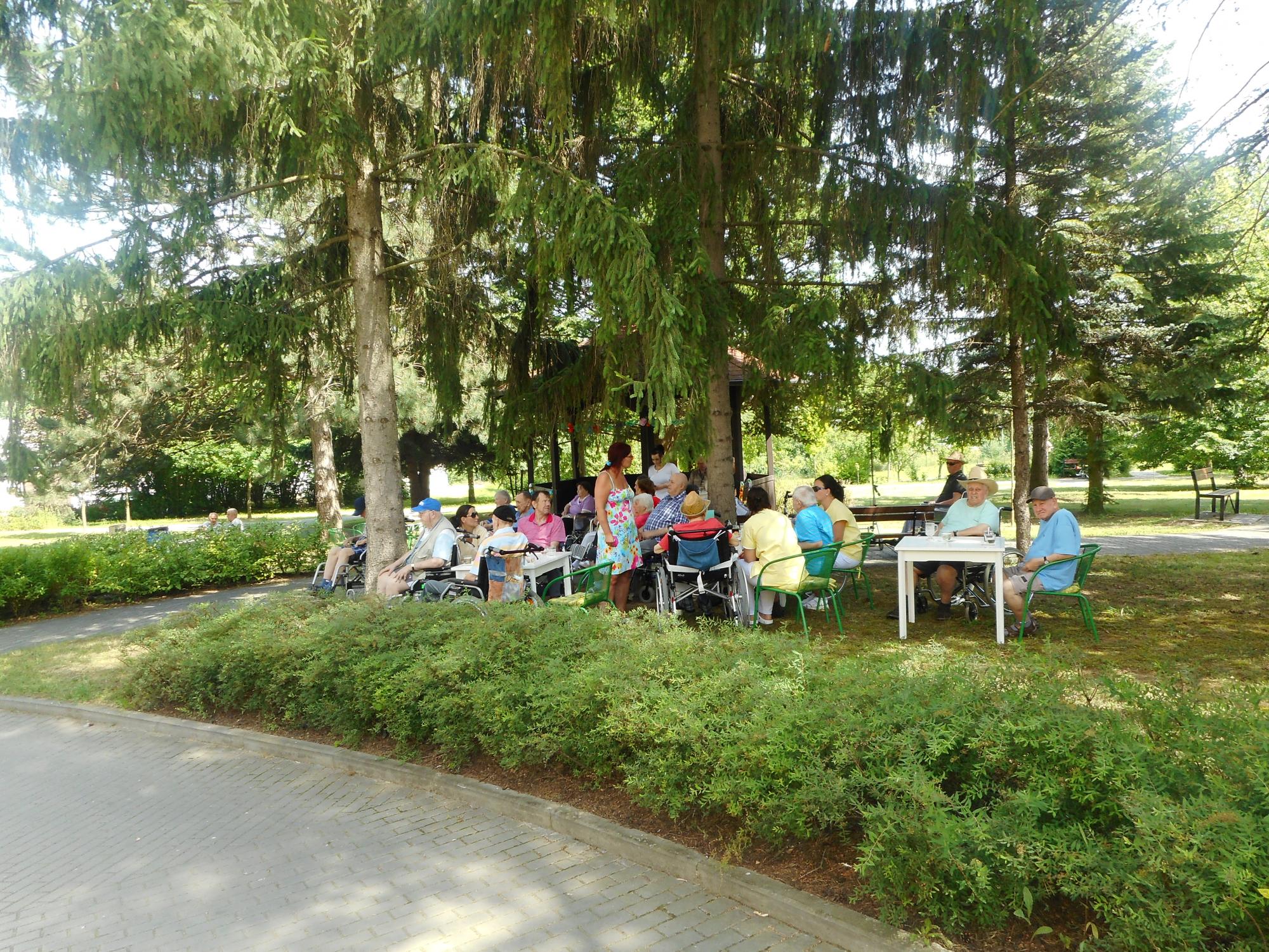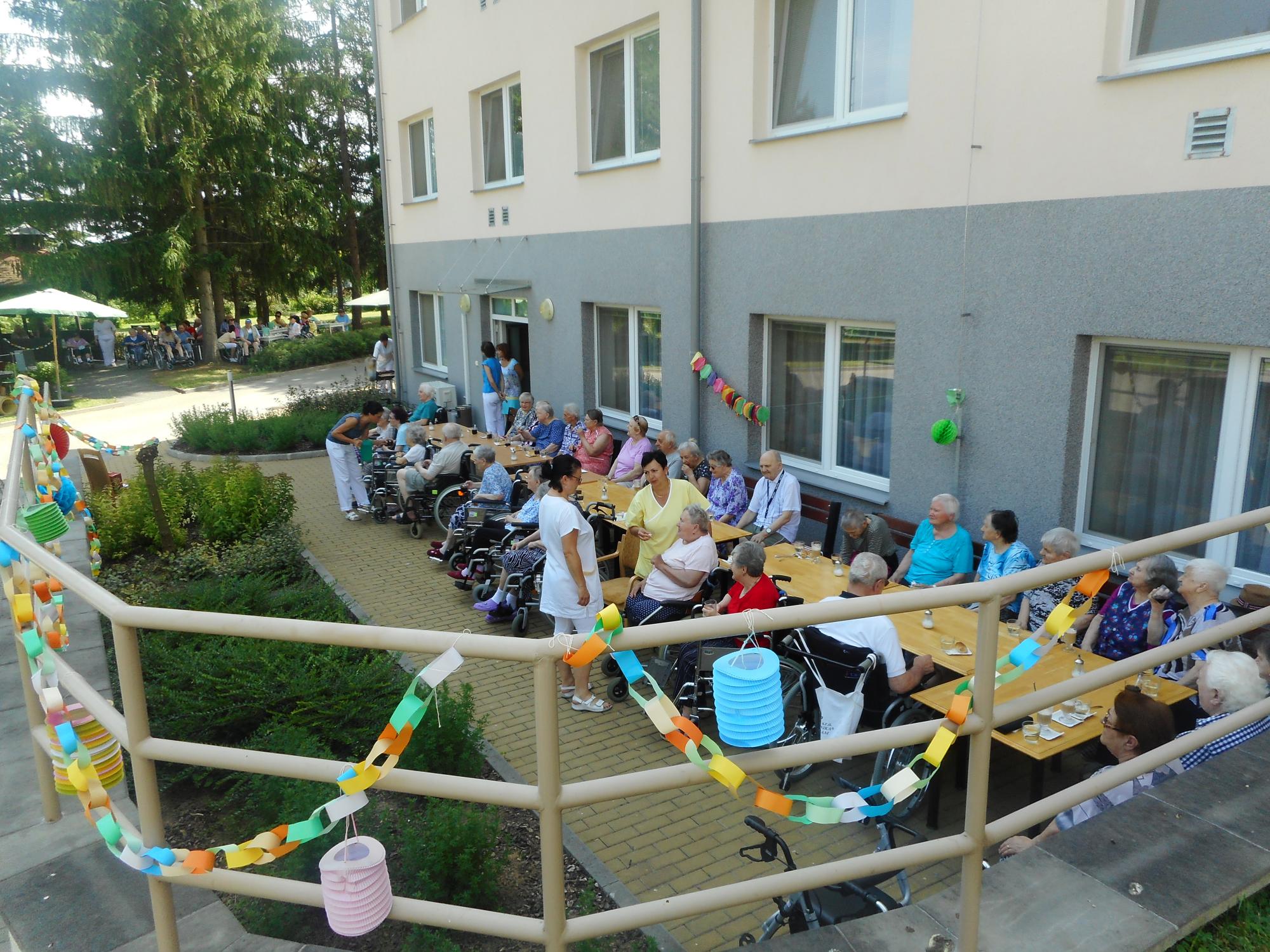 A máme tady léto a k němu neodmyslitelně patří grilování, zmrzlina a zábava. A tak to nesmělo chybět ani u nás v zařízení. Dne 12. 6. 2019 jsme proto uskutečnili tento den D. Posezení jsme letos zvolili hned za naší novou budovou, dále u altánku a mezi stromy, kde byla krásná atmosféra. K tanci a poslechu nám hrál opět pan Slováček ze Strážovic, který pravidelně doprovází naše akce. Pro naše uživatele jsme měli připravené taneční překvapení, které nacvičily naše zaměstnankyně. Nejdříve vystoupily v kostýmech berušky a zatancovaly choreografii na písničku „ Beruško půjč mi jednu tečku“, druhá píseň byla v kovbojsko-westernovém stylu, kdy nesměly chybět ani kovbojské klobouky. K příjemné pohodě nechyběly ani ořechové rohlíčky od našich šikovných kuchařek, zmrzlina, káva a hlavně grilované špekáčky, na které se naši uživatelé vždy velmi těší. Letní odpoledne se velmi vydařilo a dobrá nálada byla cítit na každém kroku. Zpívalo se, tancovalo se, jedlo se a každý na tuto akci ještě dlouho vzpomínal.