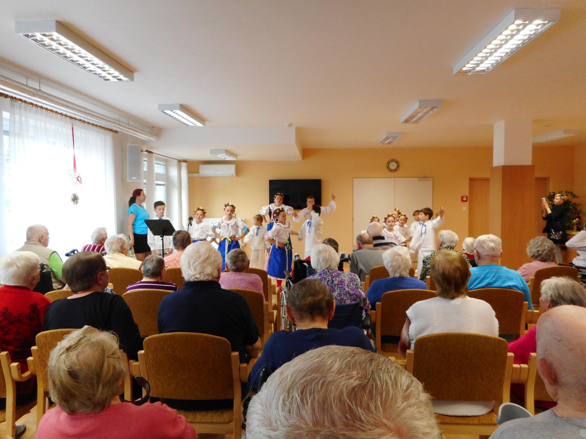 Jelikož mají naši uživatelé velmi rádi děti, přijaly naše pozvání dne 2. 5. 2019 k vystoupení děti z dětského folklorního souboru Násedlováček. Ty zde předvedly svá taneční a pěvecká čísla z oblasti Kyjovska. Potěšily tak nejednoho seniora a vykouzlily jim tak úsměv na tváři. Na koci si společně zazpívaly známé písničky. Uživatelé byli velmi spokojeni.