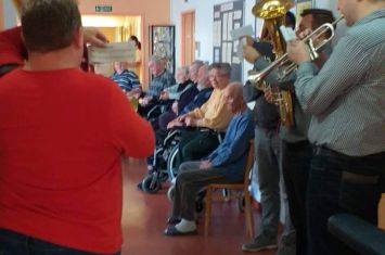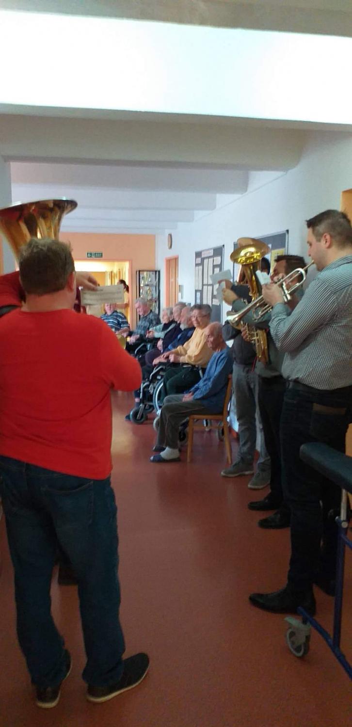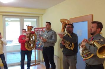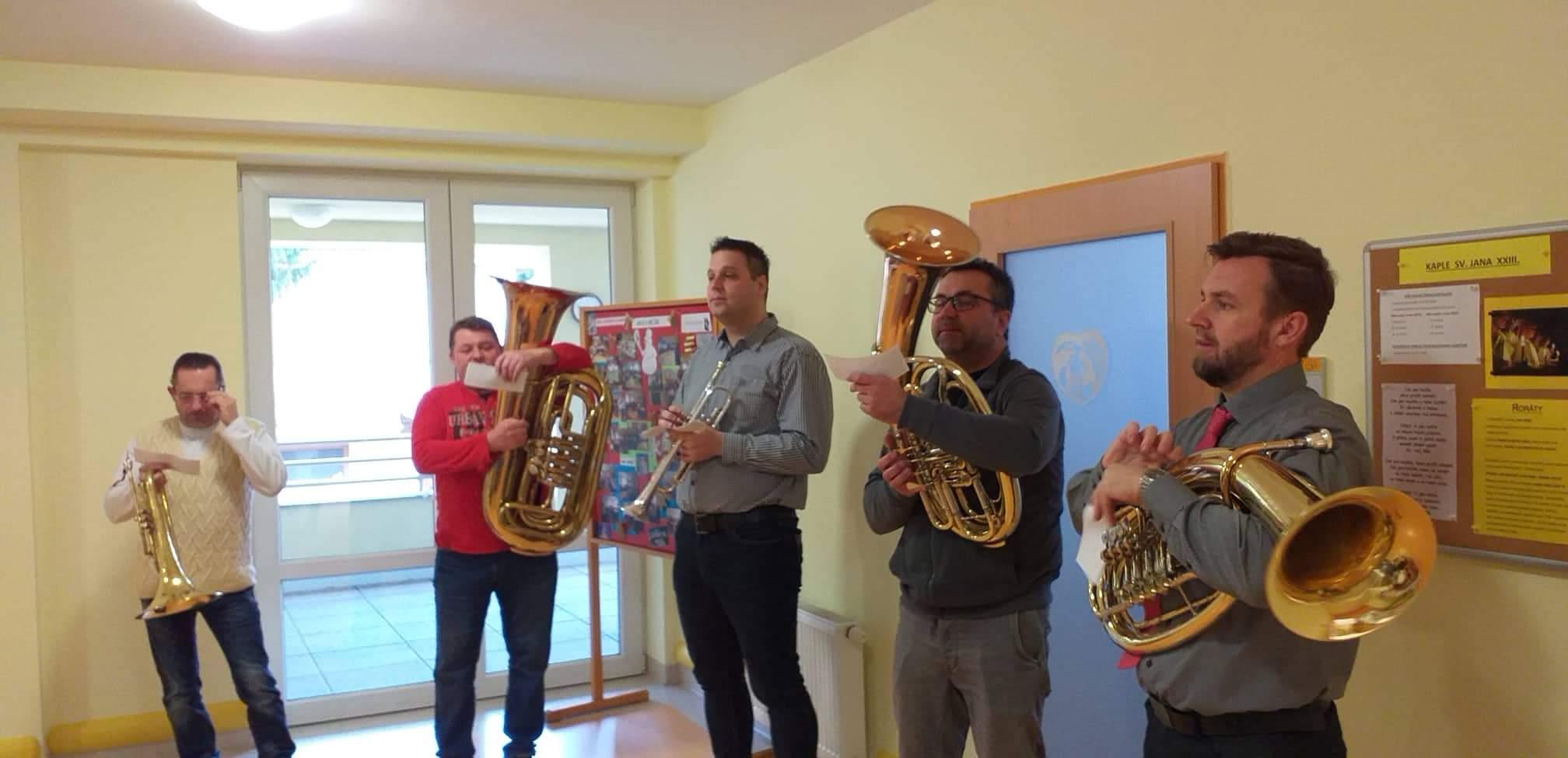 Několik členů dechové hudby Mistříňanka přišlo zpříjemnit našim uživatelům dopoledne Štědrého dne.