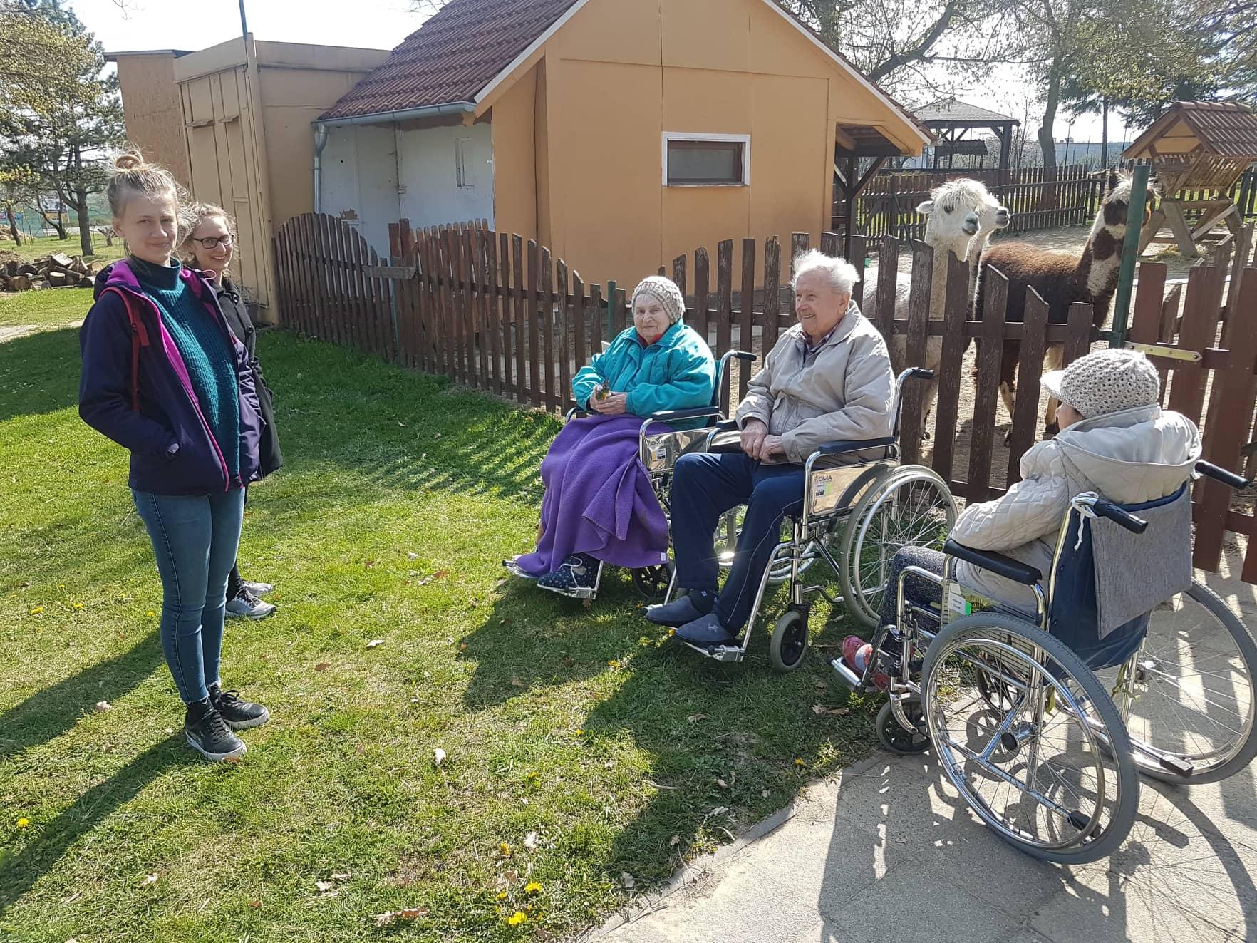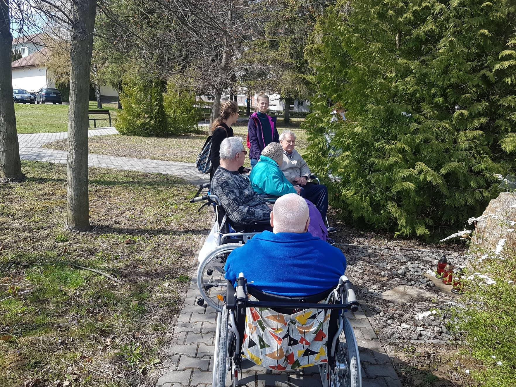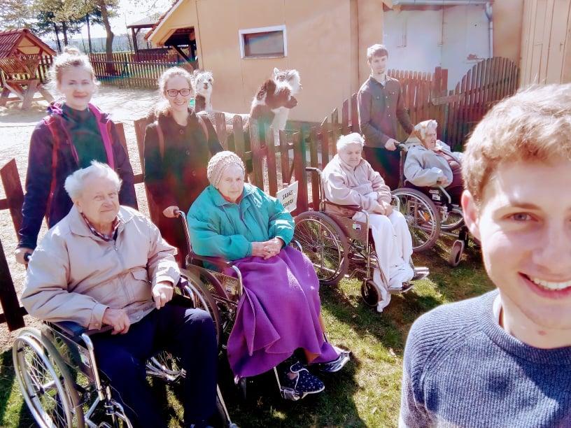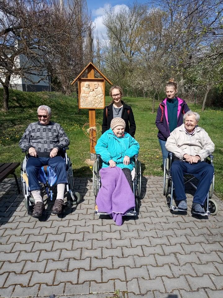 Parta studentů, která zavítala do Kyjova na setkání křesťanské mládeže, strávila u nás v Centru krásné dva dny. Jako dobrovolníci se v sobotu a v neděli vždy odpoledne věnovali našim uživatelům. Využili prostornou a již rozkvétající zahradu k vycházkám, rozjímání či popovídání si. Studenti kolem sebe rozdávali úsměvy, radost a porozumění, tím našim seniorům udělali obrovskou radost.