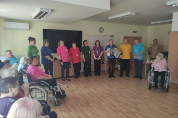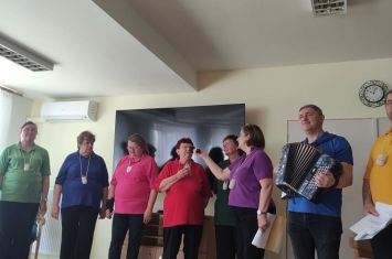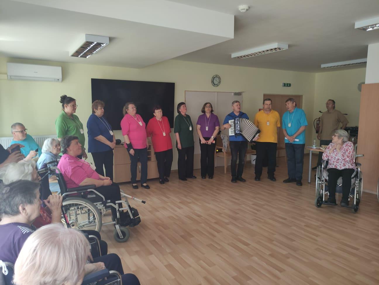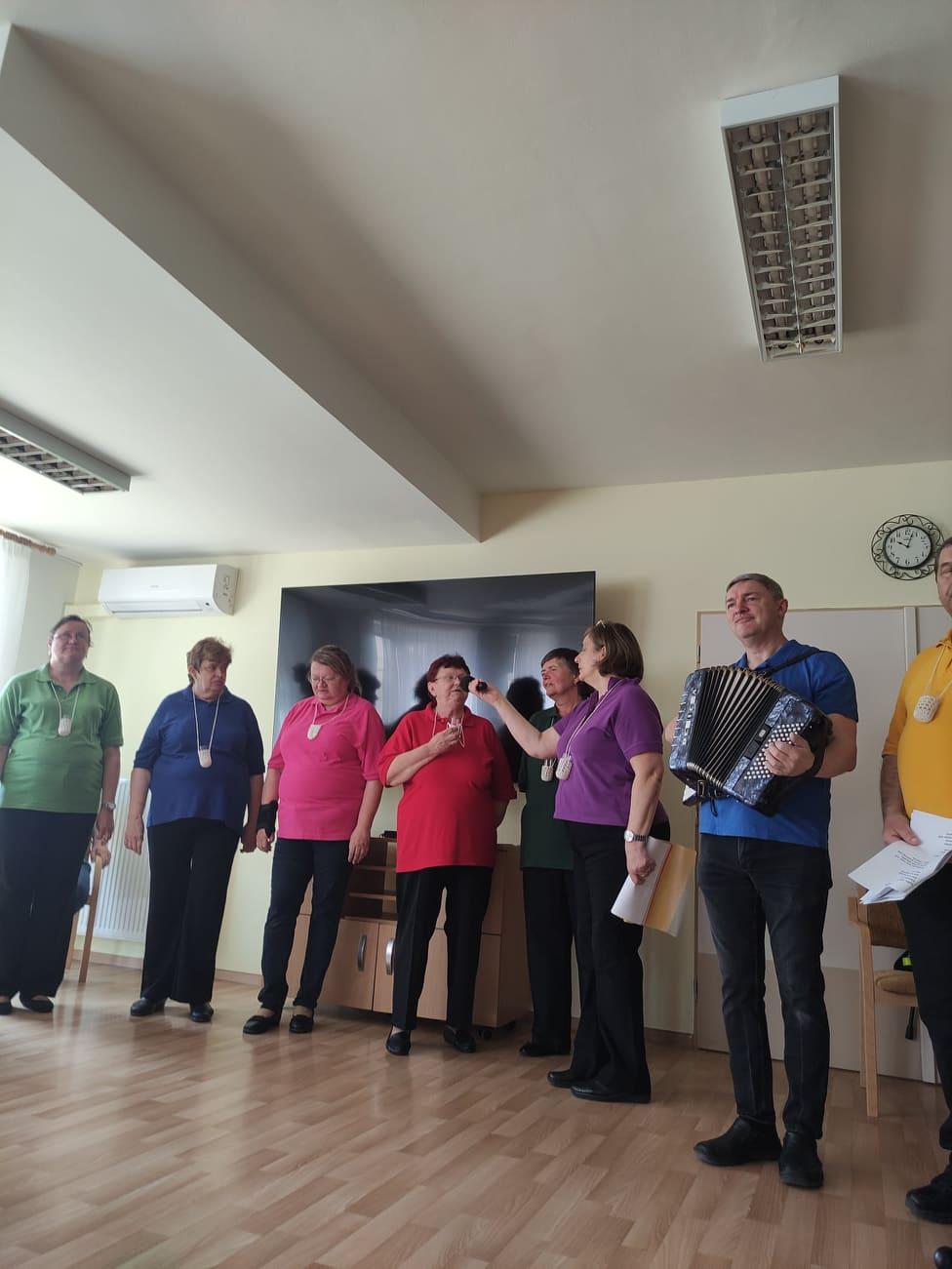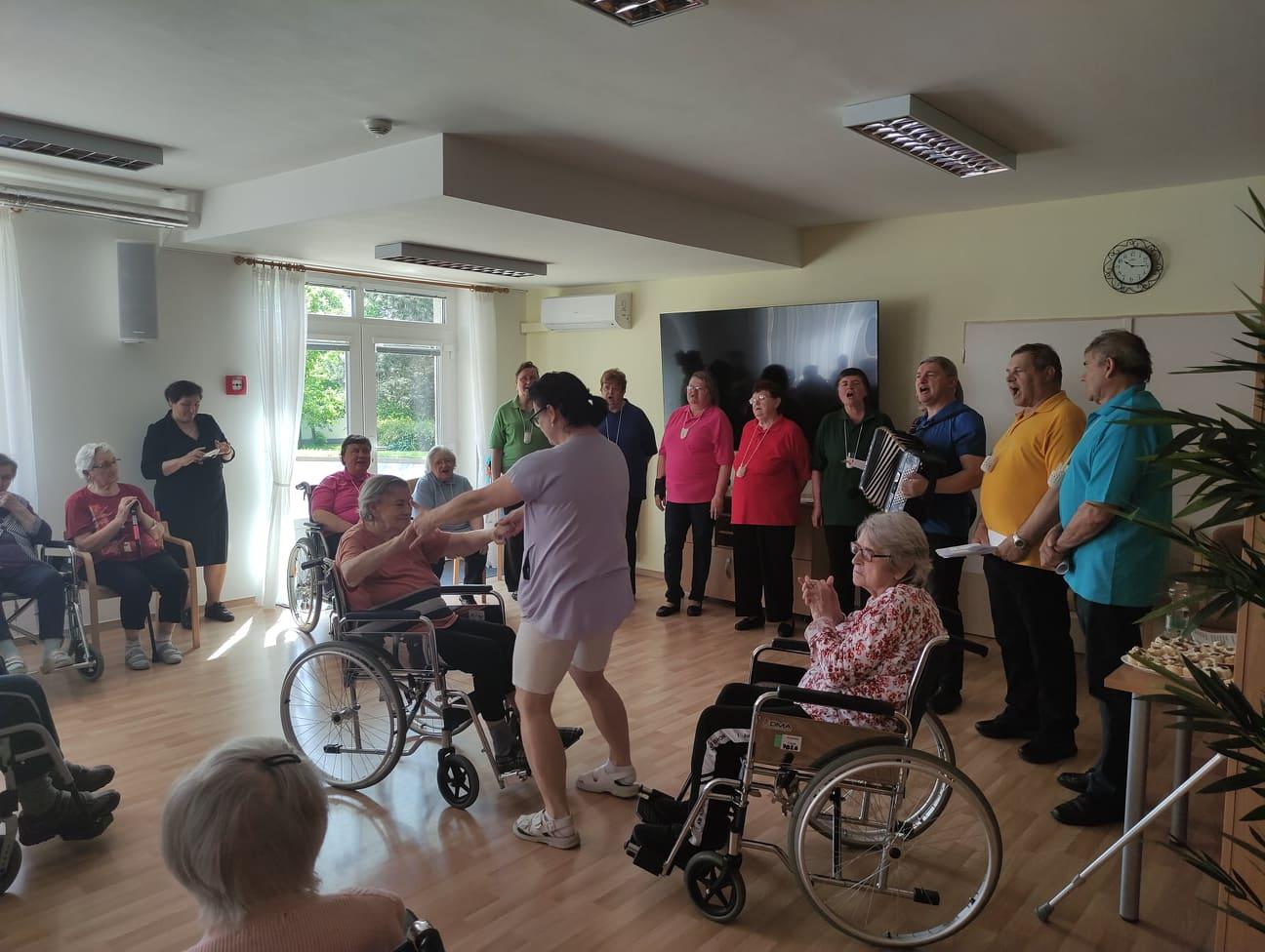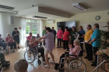 Taneční dopoledne, které jsme pořádali 11. 5., nám svým zpěvem a hrou na harmoniku obohatilo seskupení nevidomých umělců s názvem Pastelky. Černé kalhoty, barevné tričko a koštovačka na krku jsou pro ně typické. Což také vypovídá, že jejich hudební pásmo bylo o víně a o našem kraji. Jejich písně byly tak veselé, že k tanci přímo vybízely, navíc byly doplněny o vtipné komentáře a písně na přání. Dobrá nálada nechyběla a při mnohých písničkách se rozezpíval celý sál.