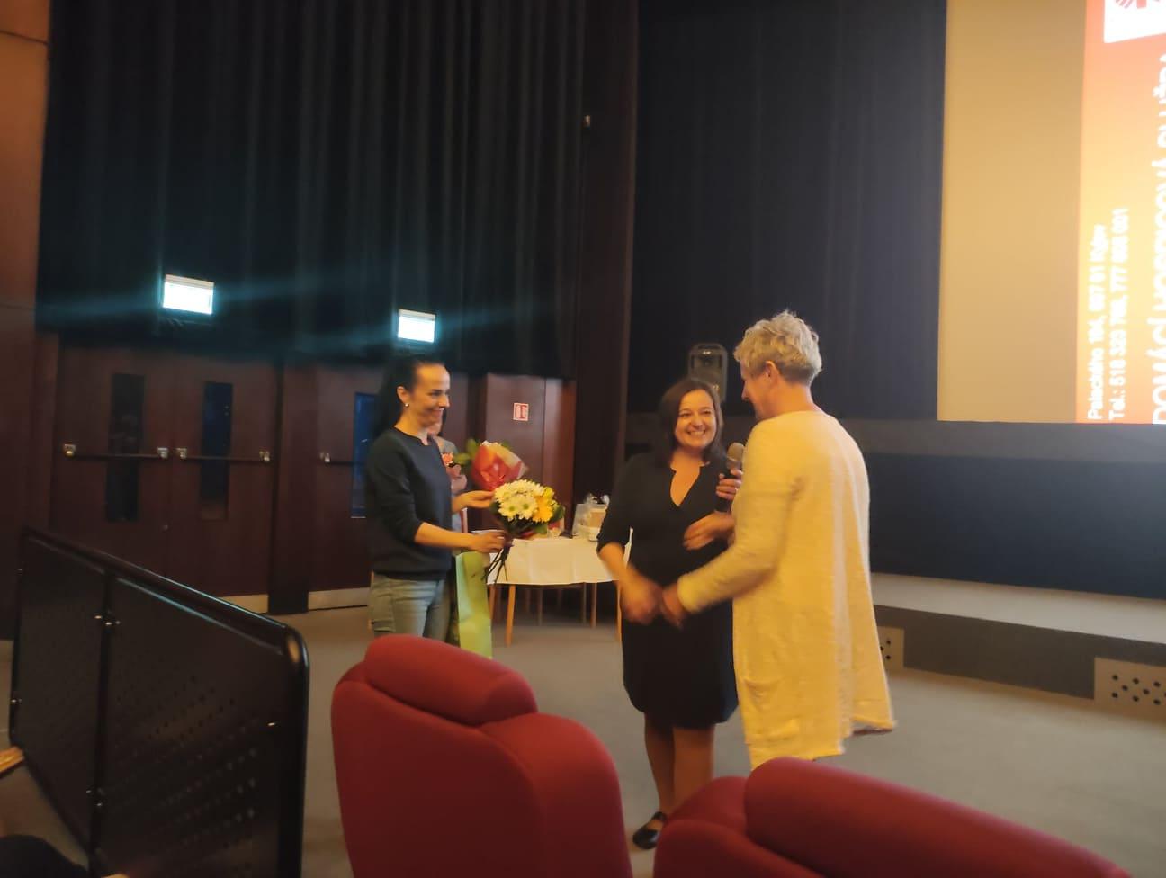 Ve čtvrtek 12. 5. jsme navštívili společně s paní ředitelkou a vedoucími úseků přímé a zdravotní péče Kino Panorama Kyjov, kde jsme společně s žáky Střední školy polytechnické Kyjov p. o. shlédli film Jednotka intenzivního života. Poté následovala beseda s paní Blaženou Hanákovou vrchní sestrou domácí hospicové služby "David" spadající pod Charitu Kyjov. Tento projekt byl přínosný hlavně v dalším kroku našeho vzdělávání v oboru paliativní péče. Nicméně velmi důležitá byla také účast žáků Střední polytechnické školy, kteří k nám do Centra dochází na praxi. Nedílnou součástí tohoto vzájemného setkání bylo poděkování z úst paní ředitelky Brančíkové jak žákům, tak paním učitelkám praktického výcviku za perfektní spolupráci, jež probíhá na přátelské úrovni a také za dobrovolnou pomoc v době, kdy nás zasáhlo onemocnění Covid_19.