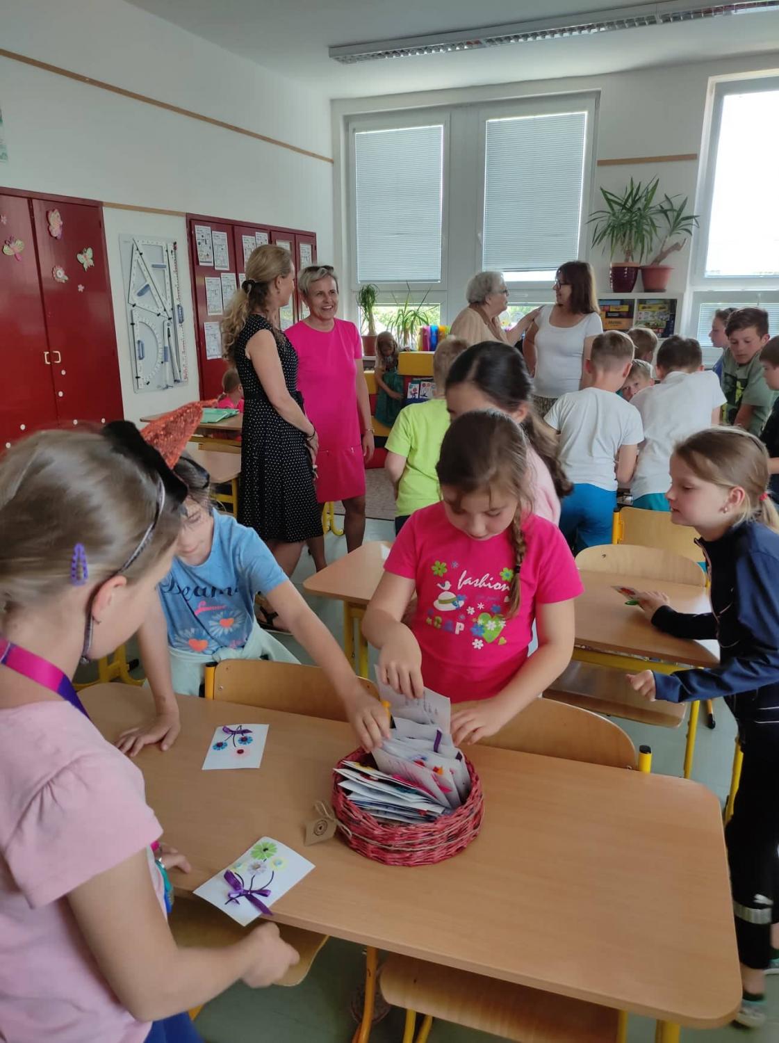 Již několikery Vánoce a Velikonoce si na naše seniory vzpomenou děti ze ZŠ Dr. Joklíka v Kyjově. Vyrábí pro ně krásná přání a vždy jim tím vykouzlí úsměvy na rtech. Abychom to dětem alespoň trochu oplatili, připravili jsme pro ně přání ke dni dětí. Dnes jsme společně s paní ředitelkou Brančíkovou navštívili školní družinu a předali přání dětem, rovněž něco sladkého na zub a také malý dárek - 3D puzzle, které děti začaly hned skládat. Dětem udělalo největší radost, že si na ně vzpomněli babičky a dědečkové zrovna na den dětí. Bylo to velmi příjemné setkání a pevně věříme, že nebude poslední.