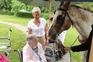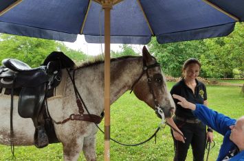 Motto Epony, jež je bohyní a ochránkyní koní potažmo i jejich jezdců zní: KŮŇ JE ČLOVĚKU LÉČITELEM, UČITELEM I PŘÍTELEM. Dnes jsme měli tu možnost se o pravdivosti tohoto motta přesvědčit a ukázalo se, jak moc pravdivé je. Navštívili nás členové Hipocentra Koryčany i s jedním z jejich koní. Velmi zajímavé a obohacující bylo vyprávění o koni a ukázka výcviku zvířete. Nicméně pro nás byl největším zážitkem reakce uživatel na toto ušlechtilé a krásné zvíře.