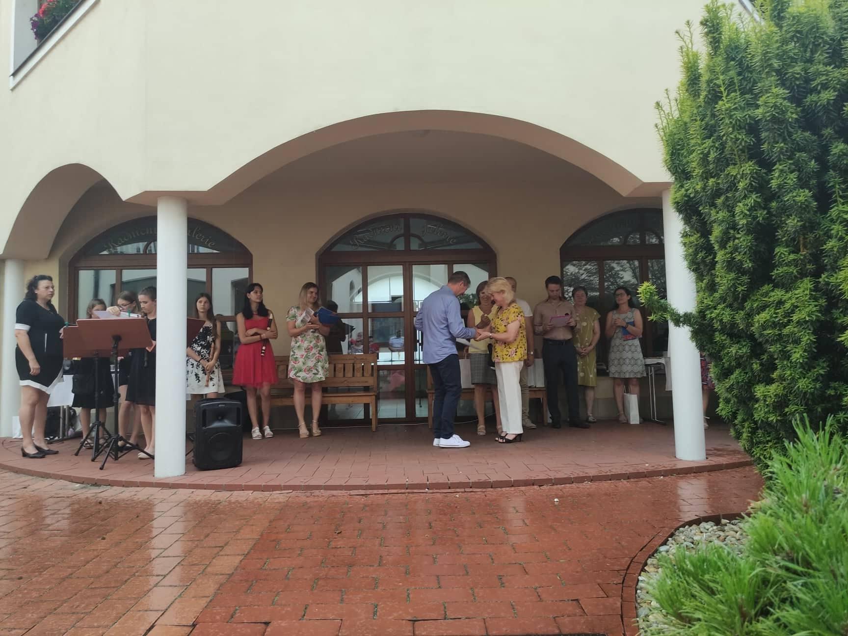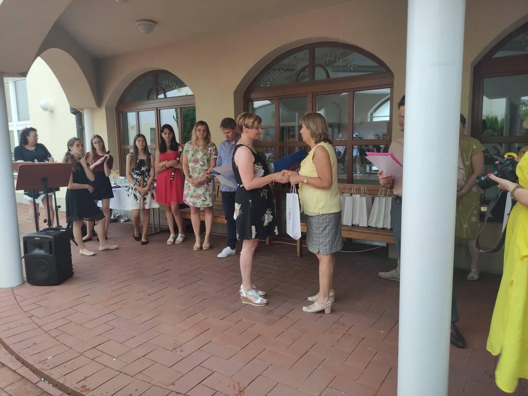 Dnes odpoledne se na vnitřním nádvoří Městského úřadu Kyjov předávala ocenění za dobrovolnictví a humanitární činnosti za rok 2020 a poté rovněž za rok 2021. Jak všichni víme, v roce 2020 nás zasáhla epidemie onemocnění Covid_19. V první vlně jsme o této nemoci téměř nic nevěděli a bylo naprosto přirozené, že jsme měli strach. Našli se ale mezi námi tací, kteří šli dobrovolně sloužit na covidovou izolaci, aniž by přemýšleli, nakolik riskují své zdraví. Za toto patří všem velké poděkování. A právě dnes z rukou pana místostarosty pana Bc. Antonína Kuchaře a zástupců společnosti Krok převzali dobrovolníci ocenění. Od nás z Centra to bylo dvanáct zaměstnanců, mezi nimiž byli zástupci managementu a pracovníci v sociálních službách. Děkujeme a gratulujeme.