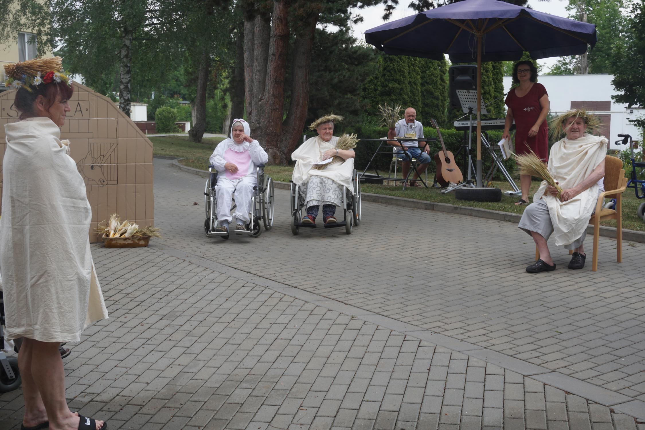 V dnešní horký letní den jsme u nás v Centru uspořádali Letní odpoledne. K osvěžení nám posloužila vodní mlha. Celým odpolednem nás hudebně doprovázel pan Fridrich ze Stavěšic. Program zahájila paní ředitelka úvodním slovem a přípitkem, následovalo krátké divadelní představení s názvem Kuřátko a obilí, které odehráli naši uživatelé, poté následovala volná zábava a tanec. Pro uživatele jsme připravili domácí béleše s povidly a mákem, opečené špekáčky a pivo, nechyběla ani káva a osvěžující bezinková limonáda.