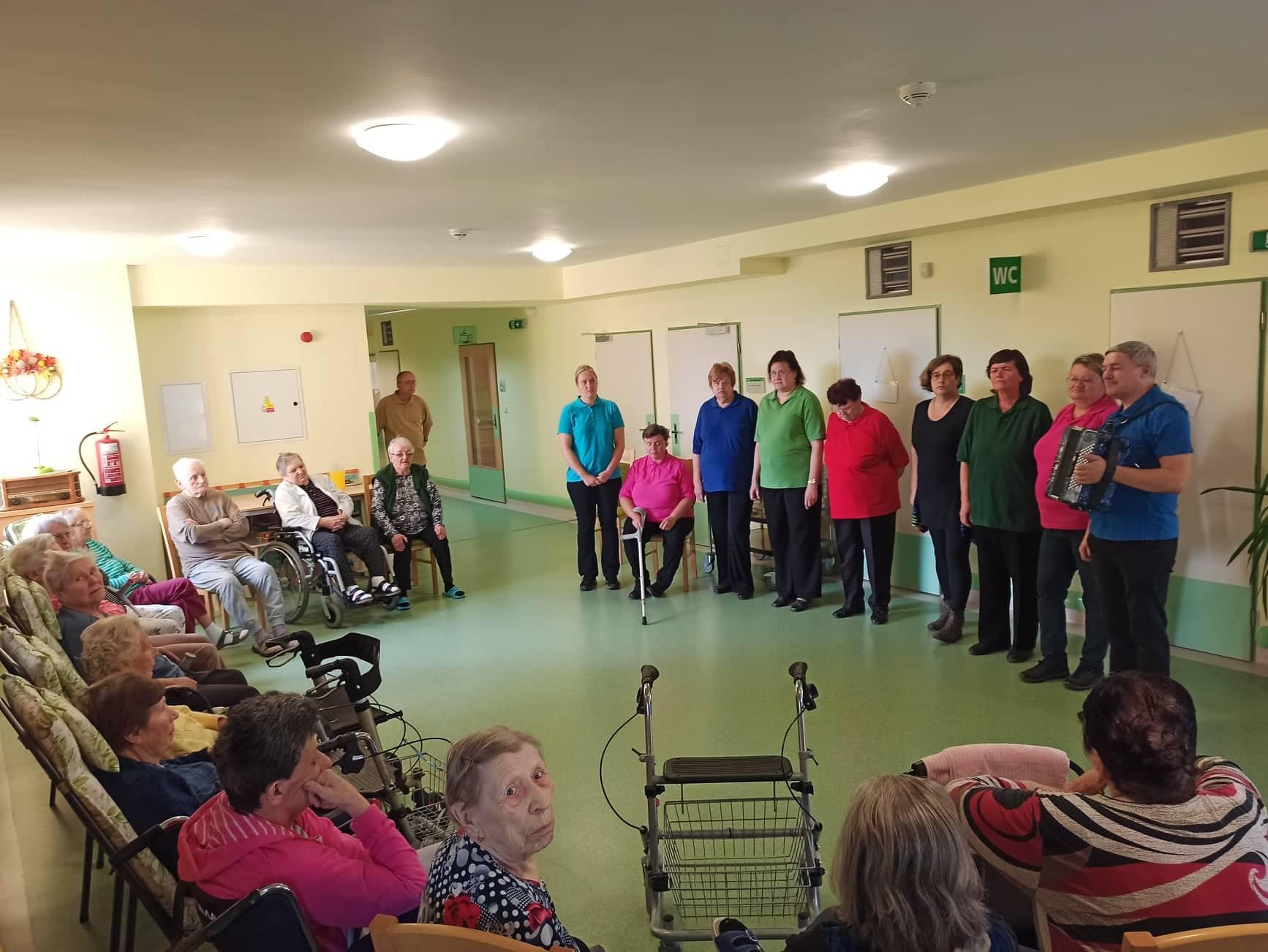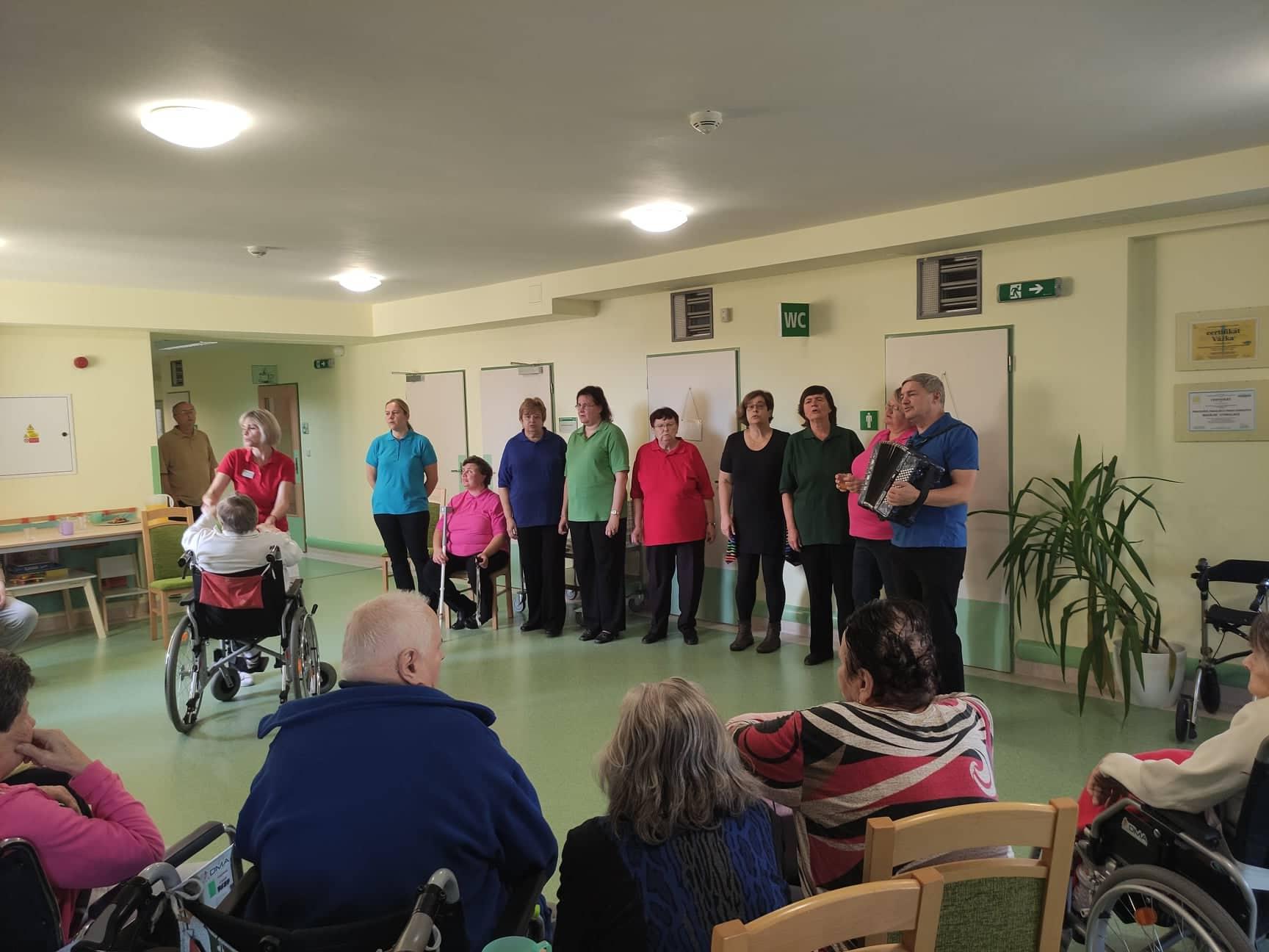 V pondělí 17. 10. k nám do Centra zavítali letos již potřetí nevidomí zpěváci ze sdružení SONS pod názvem Pastelky. Vždy si pro seniory připraví tematické pásmo, tentokrát to bylo pásmo hodové. S harmonikou a skleničkou vína zpívají a rozveselují všechny přítomné. Nikdy nezapomenou své pásmo proložit vtipnými historkami, takže je po celé dopoledne o zábavu postaráno.