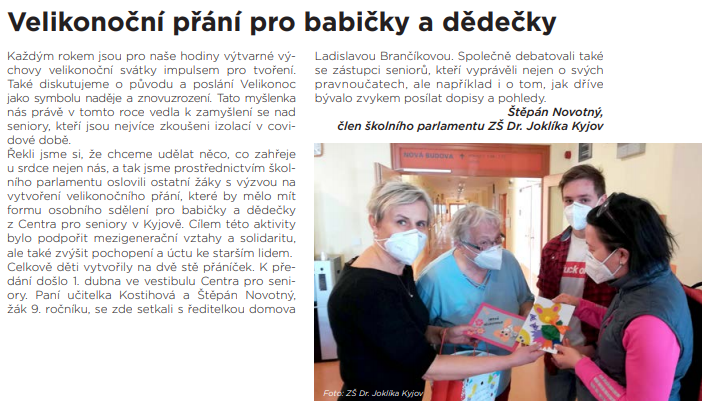 Kdykoli jsem šla nebo jela kolem vaší budovy, tak si na vás vzpomenu, držím palce, abyste tu covidovou zátěž zvládly. Jsem s vámi, držím palce a přeji vám všem kolem sebe lidí s pozitivním myšlením a hezkými láskyplnými vztahy.
