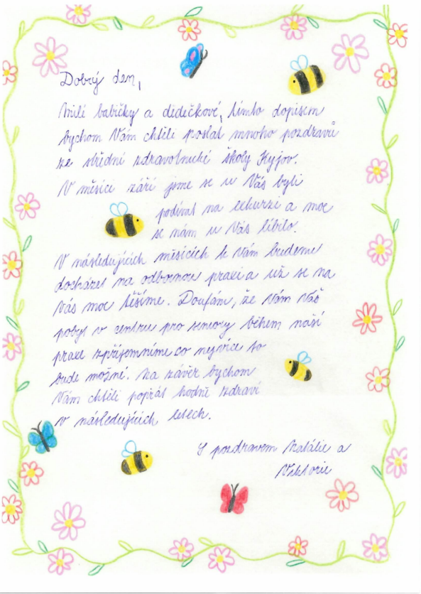 Poděkování za péči - přepis dopisu z listopadu 2024